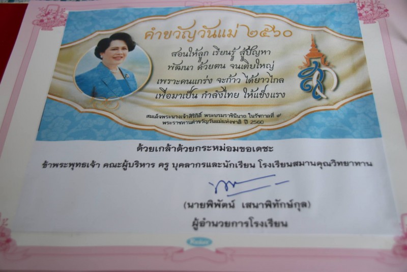 ข้าพระพุทธเจ้า ผู้บริหาร คณะครู บุคลากร นักเรียนและผู้ประกอบการร้านค้า โรงเรียนสมานคุณวิทยาทาน โรงเรียนการกุศลของวัดในพระพุทธศาสนา |