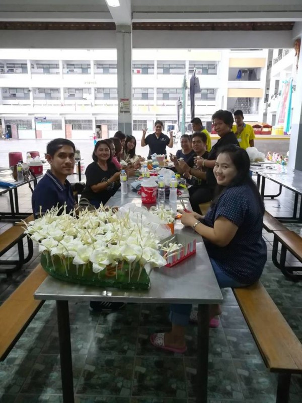 ผู้บริหาร คณะครู บุคลากร นักเรียนและผู้ประกอบการร้านค้า ร่วมประดิษฐ์ดอกไม้จันทน์