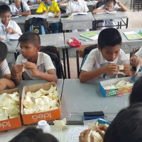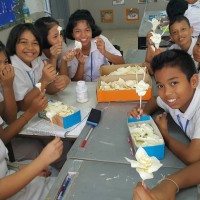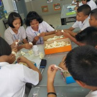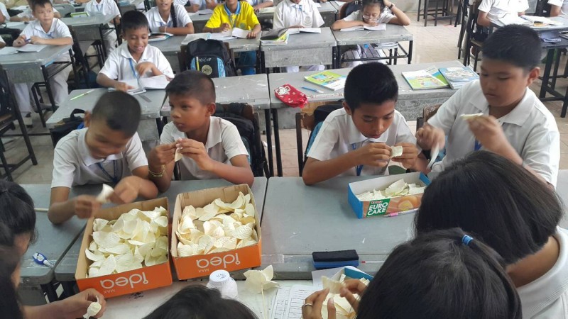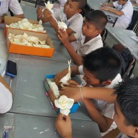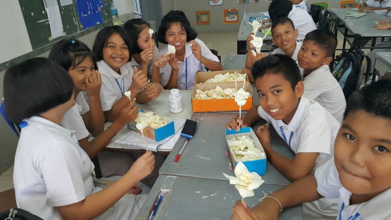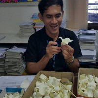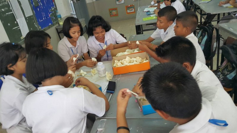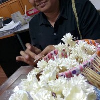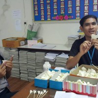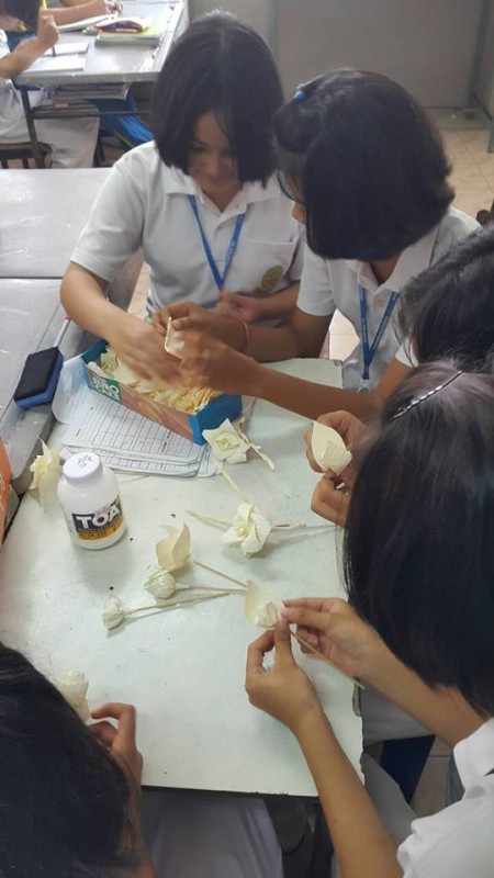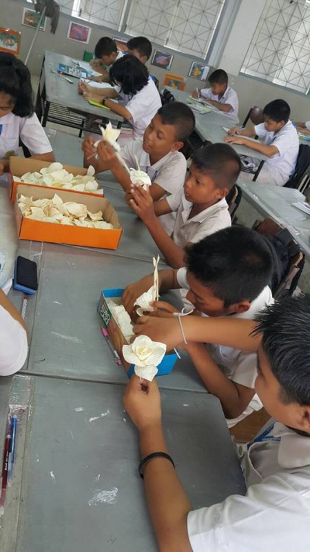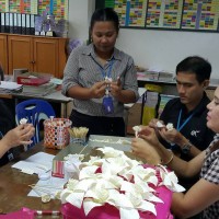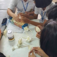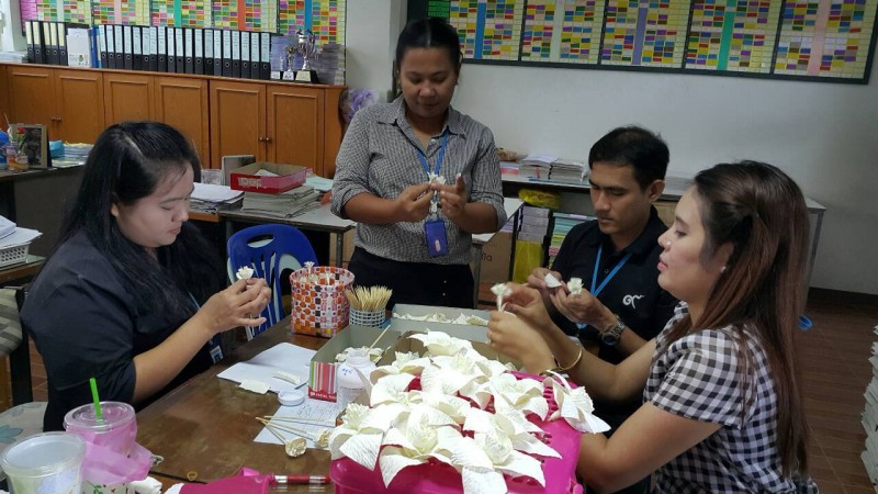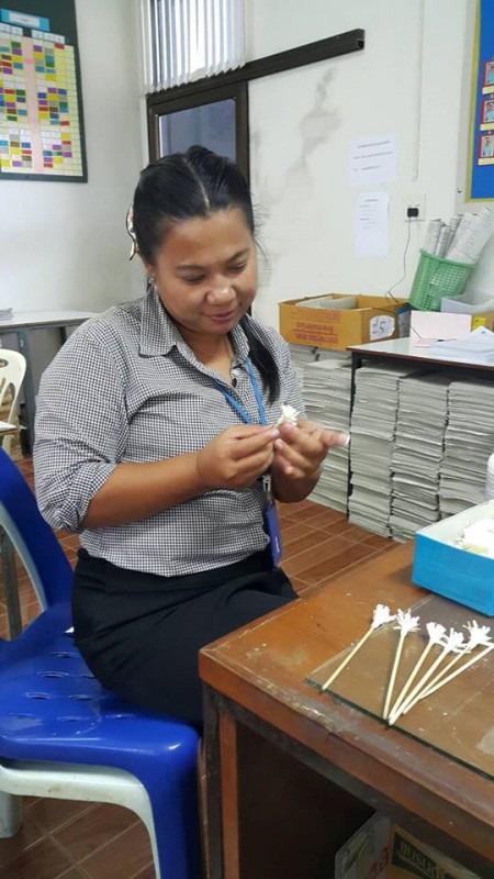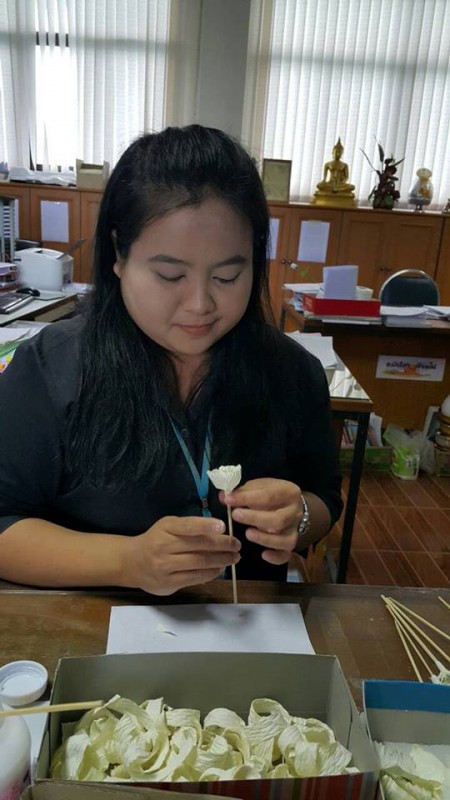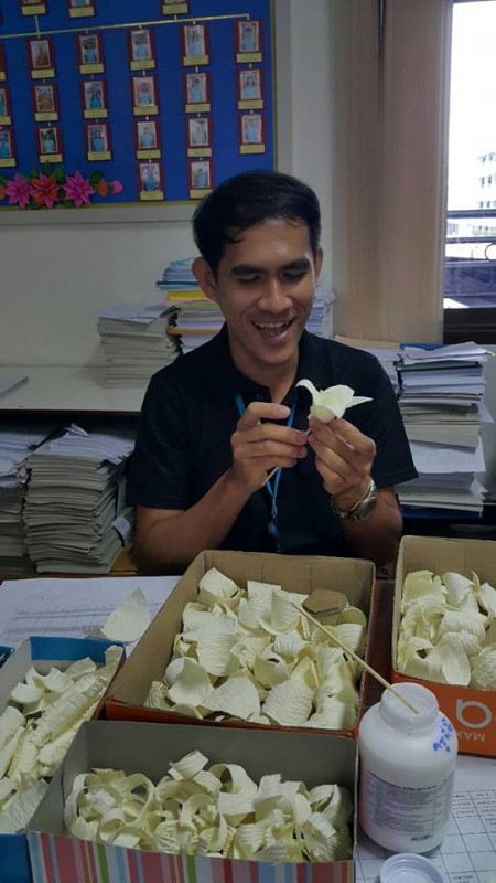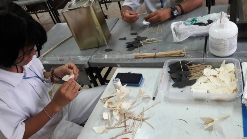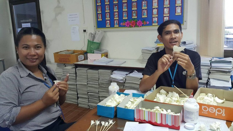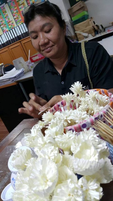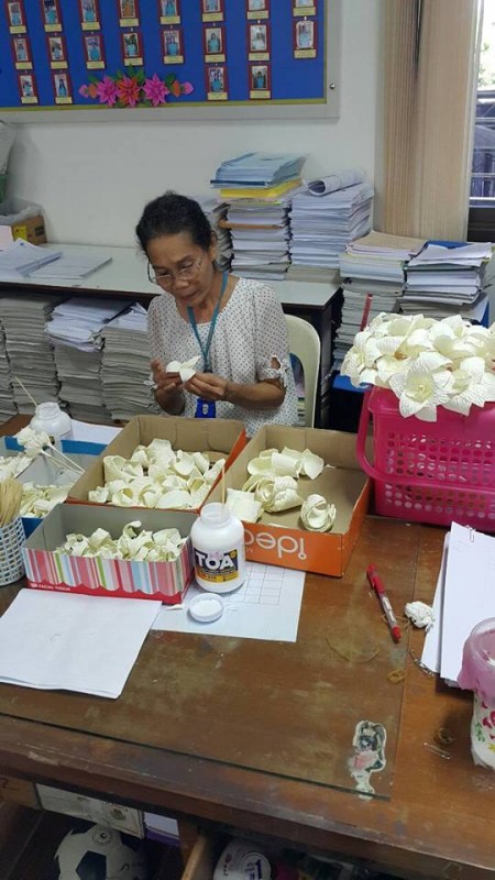 ผู้บริหาร คณะครู บุคลากร นักเรียนและผู้ประกอบการร้านค้า ร่วมประดิษฐ์ดอกไม้จันทน์