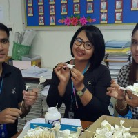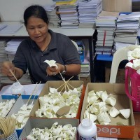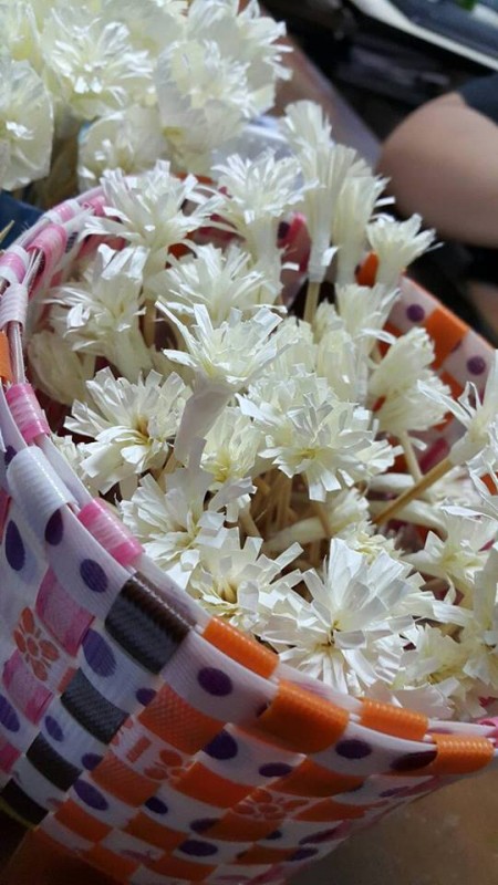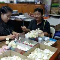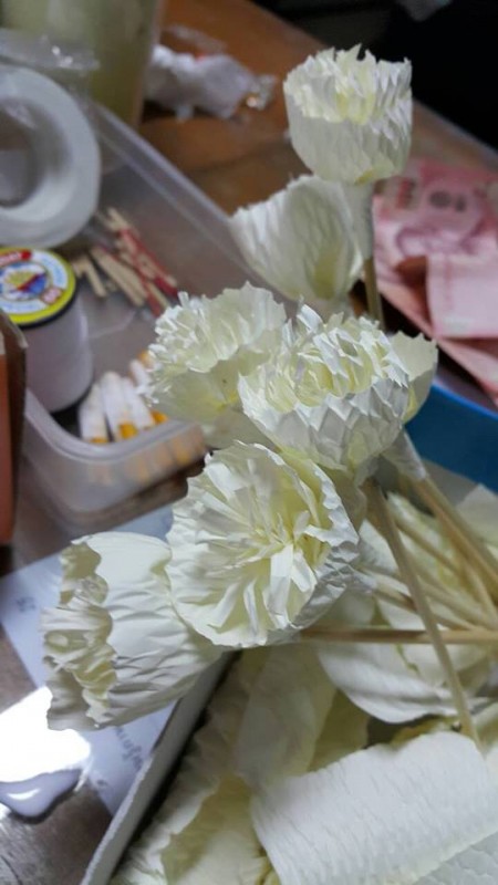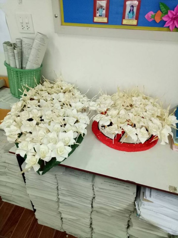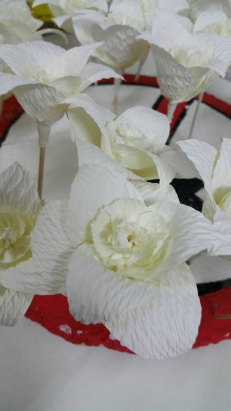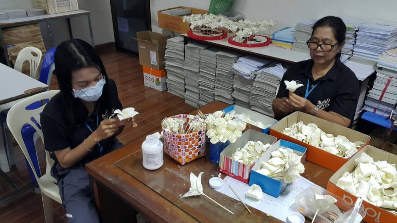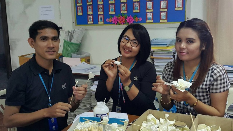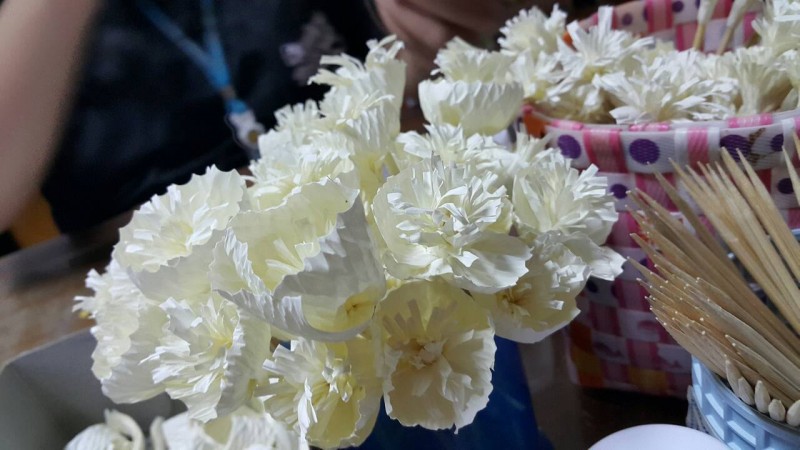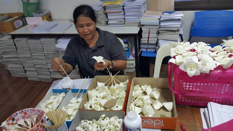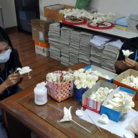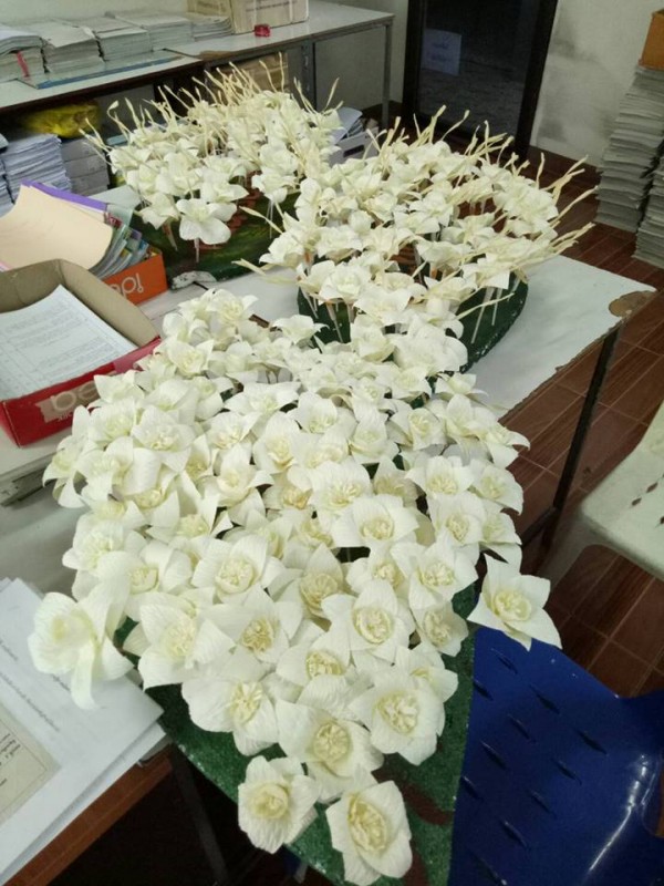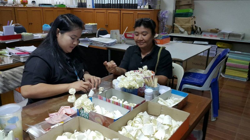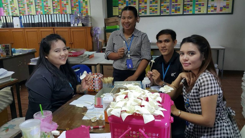 ผู้บริหาร คณะครู บุคลากร นักเรียนและผู้ประกอบการร้านค้า ร่วมประดิษฐ์ดอกไม้จันทน์