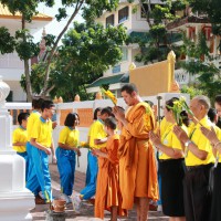 พิธีถวายเทียนพรรษา ผ้าอาบน้ำฝน จตุปัจจัย และเวียนเทียน